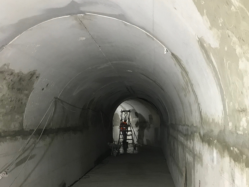 Ce puits d’évacuation a été ensuite relié à un couloir de connexion de longueur de 60 m env. (excavé sous cintres par les équipes de Parenge)