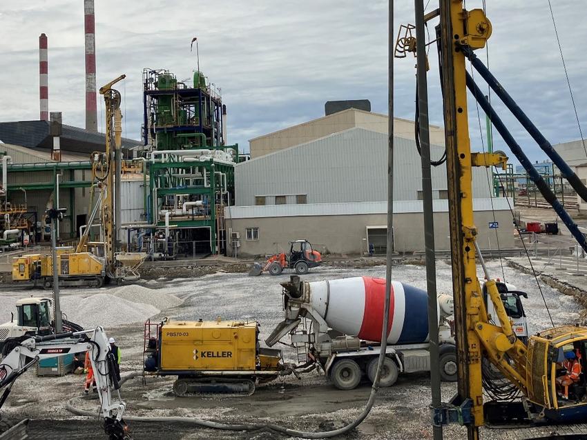 La solution retenue par Keller est une solution de renforcement de sol par inclusions rigides INSER® de 300mm et 18,5m/PFT et de drains verticaux.
